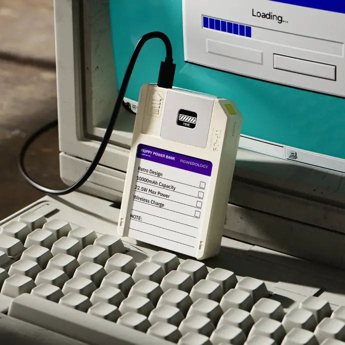 The Powerology Floppydisk Retro 10000mAh MagSafe Power Bank - White combines a retro design with modern technology. The power bank contains a reliable and long-lasting 10000mAh lithium polymer battery. It features a fast charging system with PD 22.5W and thus ensures the devices are charged quickly and in an efficient way. It has USB-C input (5V/3A, 9V/2A, 18W Max) and USB-C output (22.5W Max), hence it is versatile and compatible with a wide range of devices, iOS 5.1+ and Android 4.4+ included. It has a storage capacity of 64GB (USB 3.2 Gen 1), which carries with it a data transfer speed of 150MB/s, and thus, power and storage are perfectly balanced. The casing of the power bank is made from fire-resistant PC material, and it is equipped with an OLED display; hence, it is safe and user-friendly. The wireless output (5W / 7.5W / 10W / 15W Max) feature certainly adds to its versatility and makes it a must-have accessory for technology lovers.