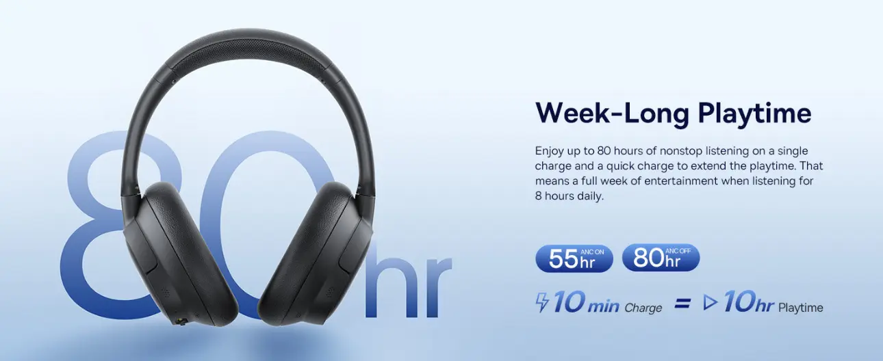 Foldable, Ergonomic Design: Over-ear, cushioned earpads with foldable structure for portability and comfort.