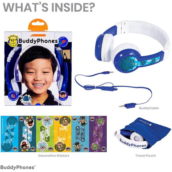 The new BuddyPhones Explore line features a built-in, volume limiting circuitry that caps the sound automatically at 85 decibels, the level recommended by the World Health Organization (WHO) for kids.